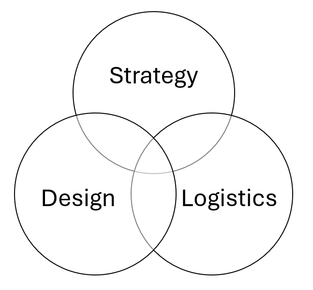Why? Because strategy, design, and logistics overlap each other.